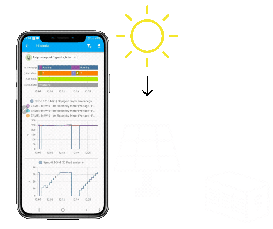 ZiZE łączy dane z Twojego falownika oraz systemu pomiarowego, aby zapewnić pełny obraz zużycia i produkcji energii.